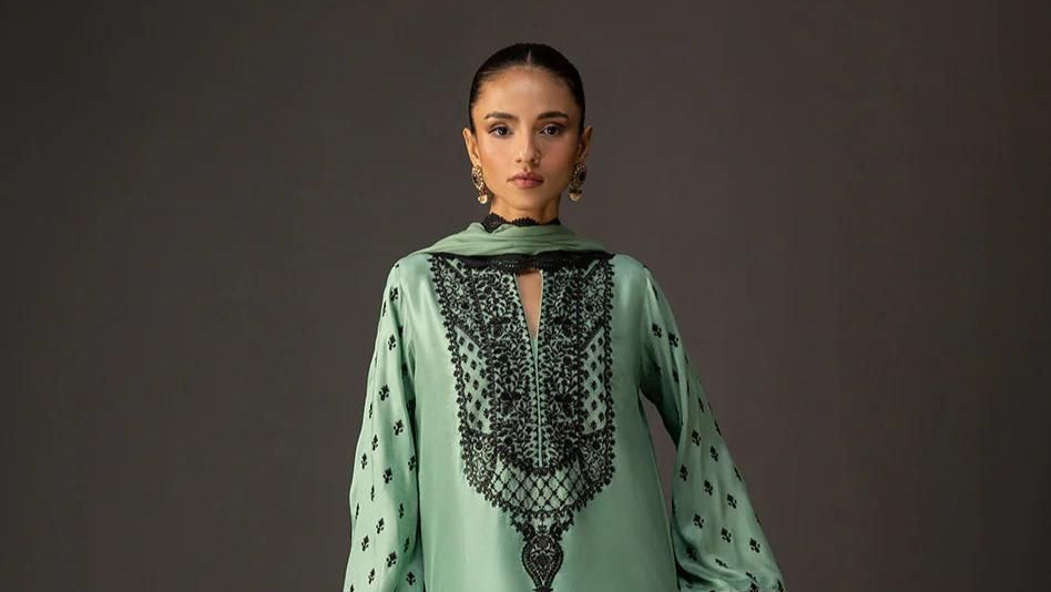 Shamoze Silk Gala Border & Simple 2 Tone Tye N Dye Shirt With Digital Print Sleeves With Shamoze Silk Trouser Along With Silk Tye N Dye Dupatta