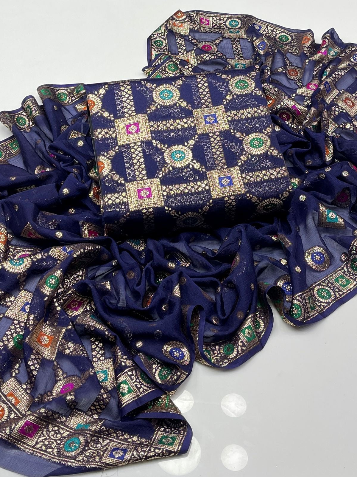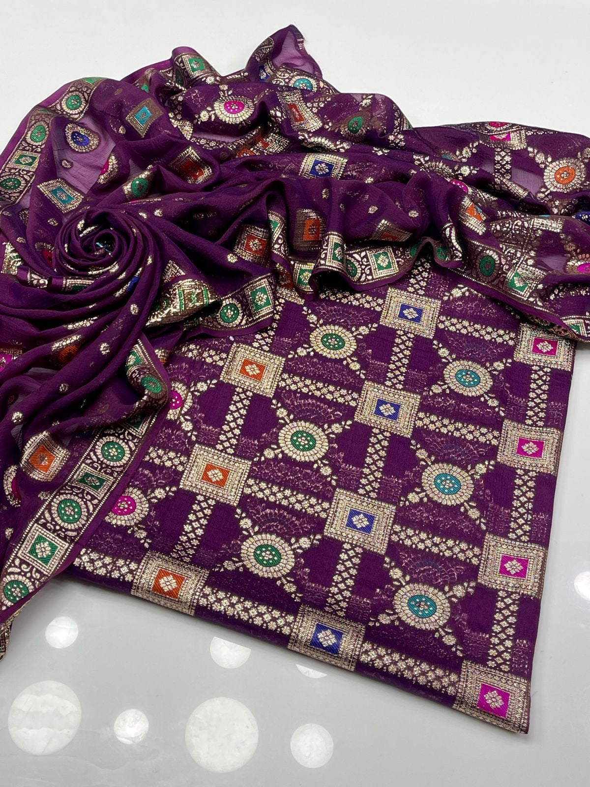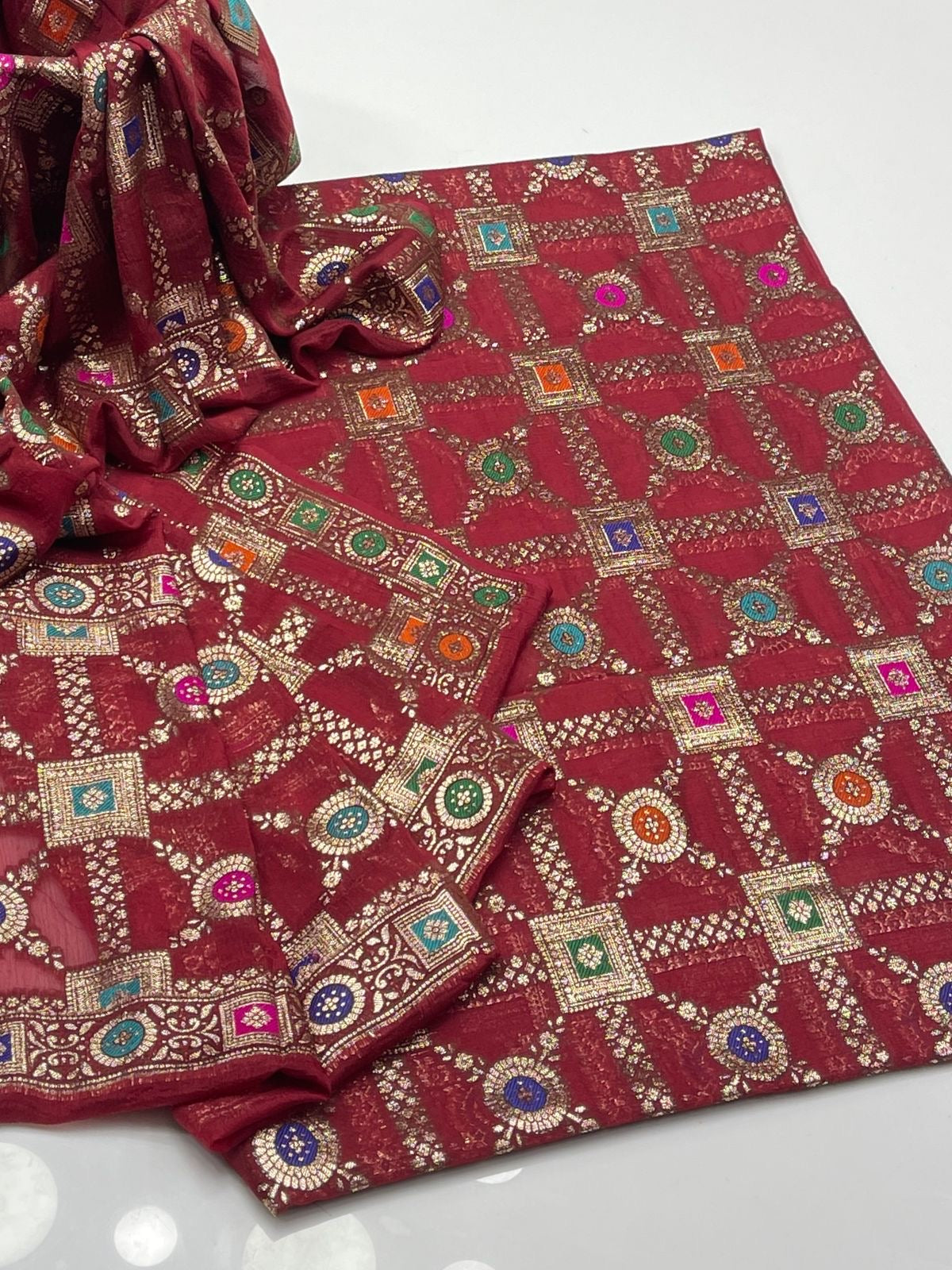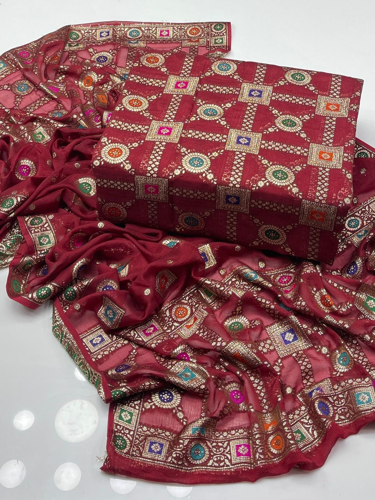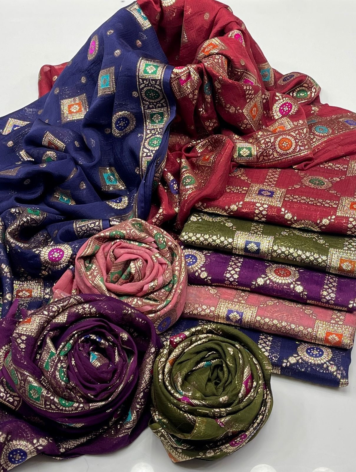 🌱 Pure Indian Bamber Chiffon Banarsi Shirt & Dupatta