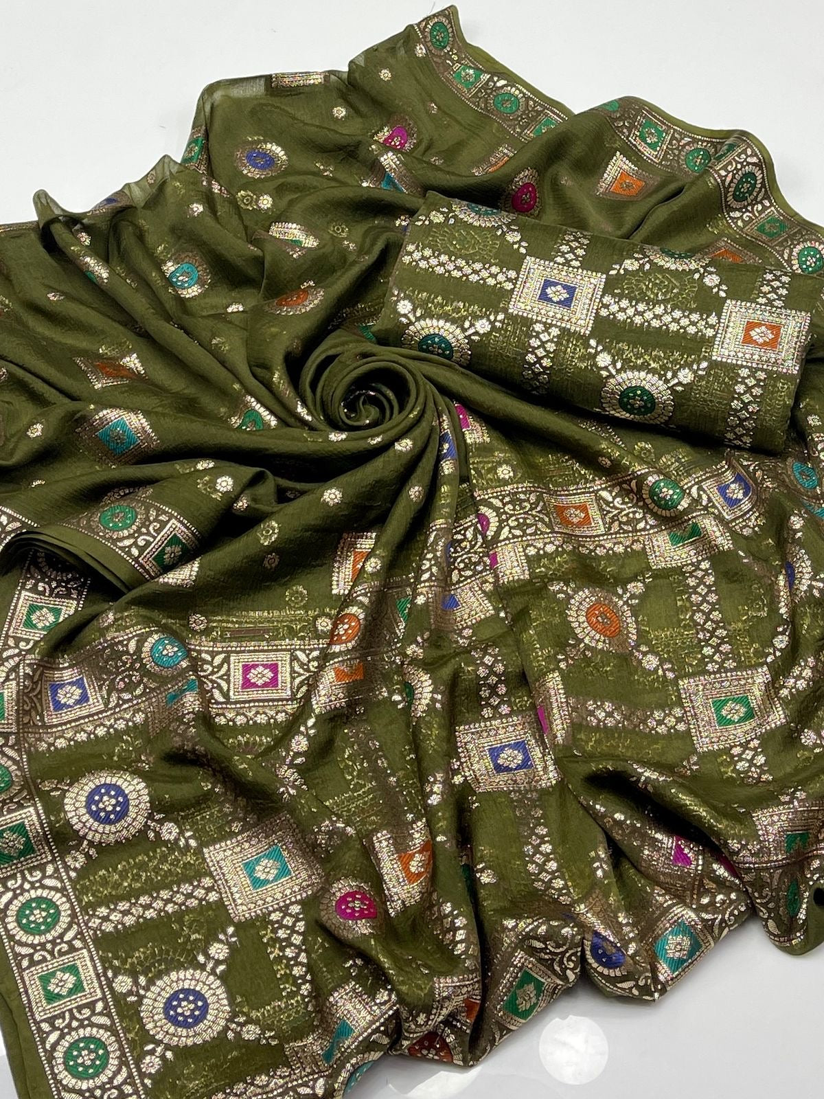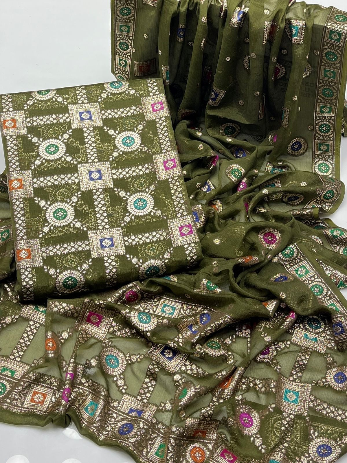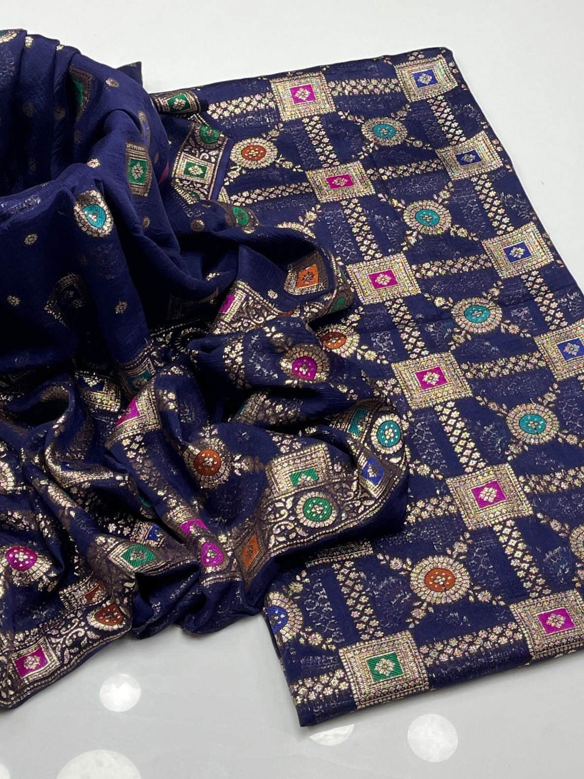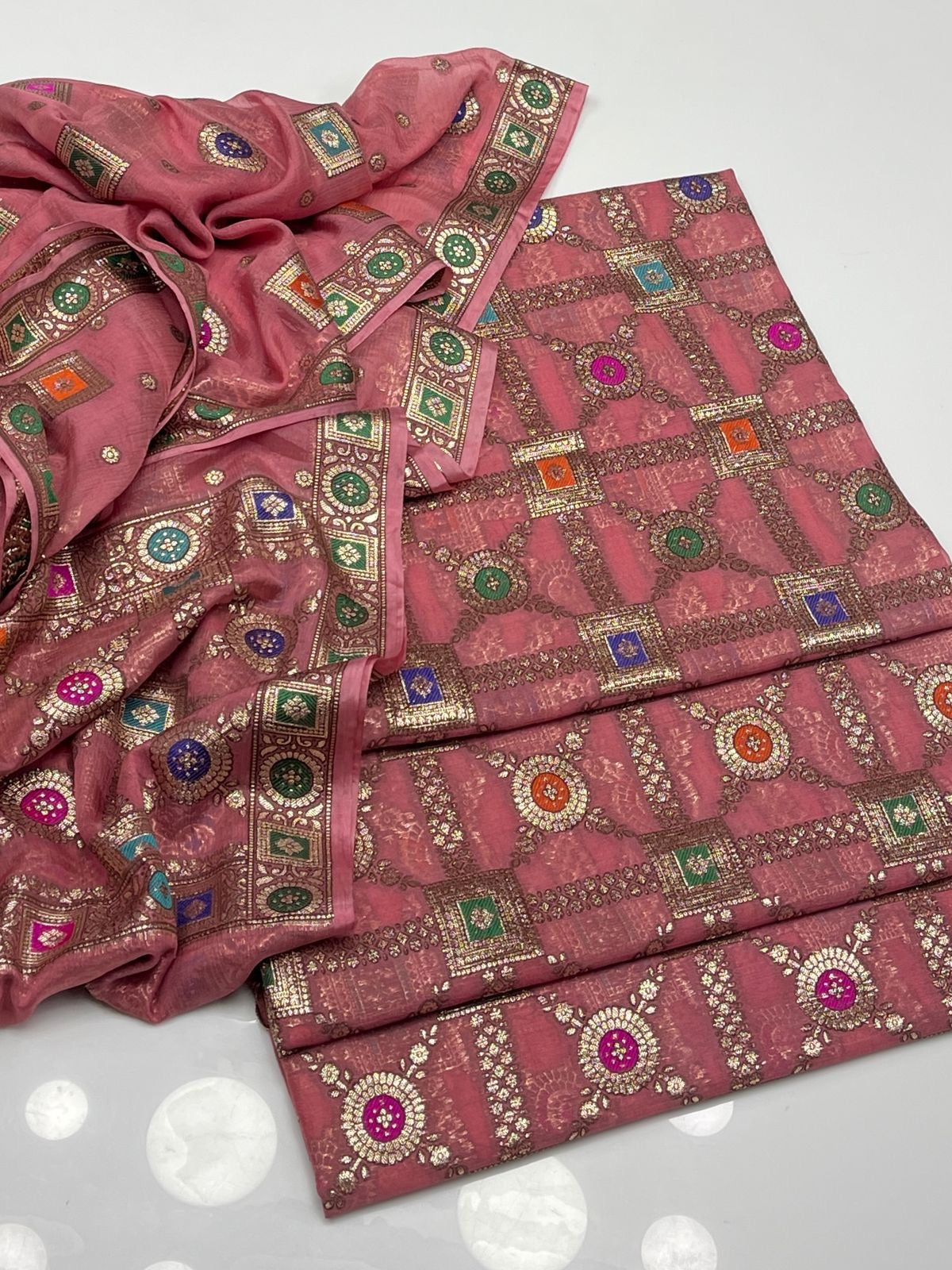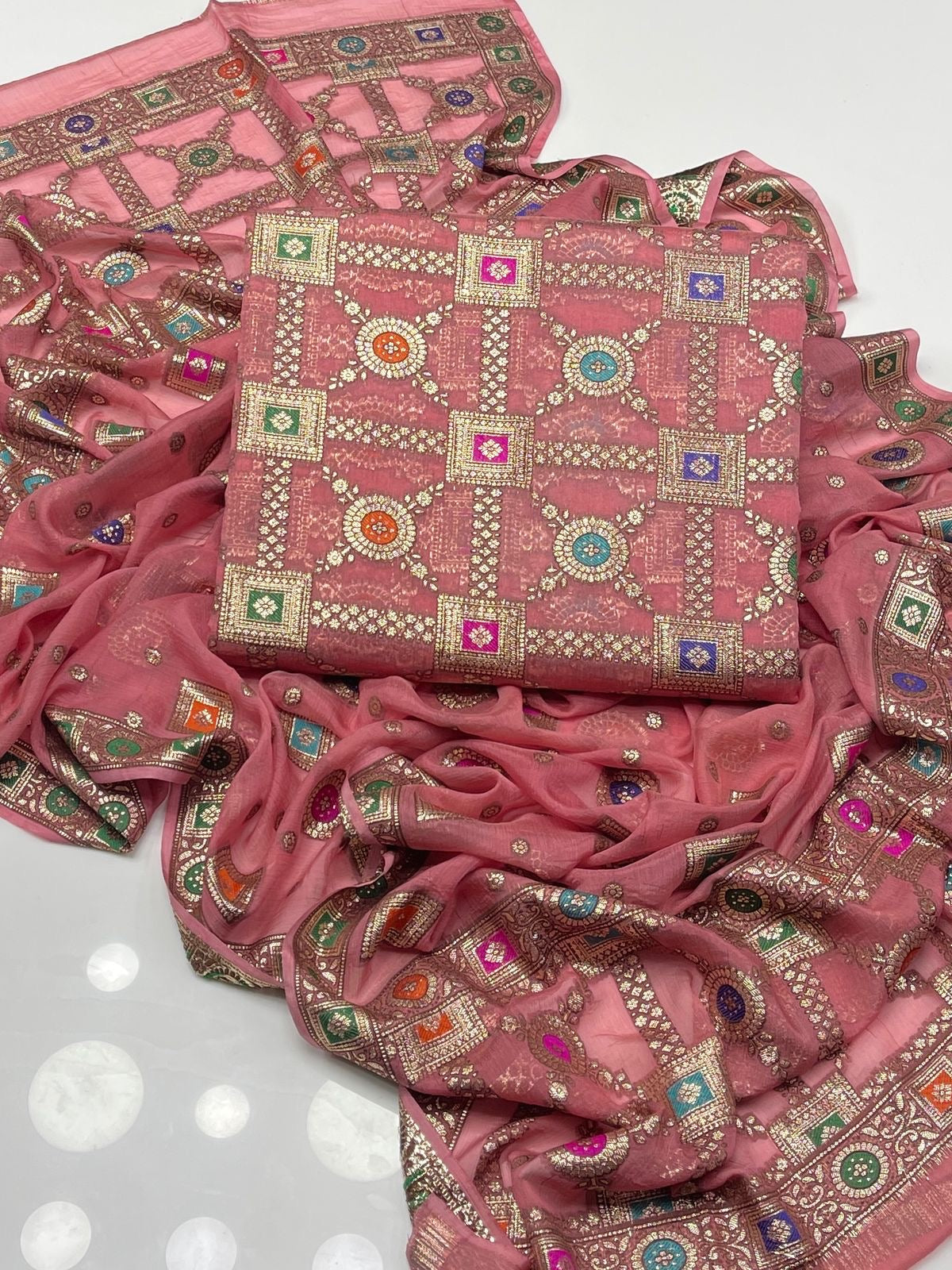 🌱 Pure Indian Bamber Chiffon Banarsi Shirt & Dupatta